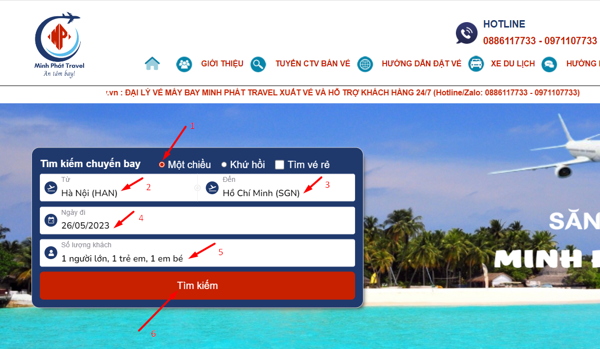- ► Nhấn vào nút “Tìm kiếm” để vào tìm kiếm chuyến bay