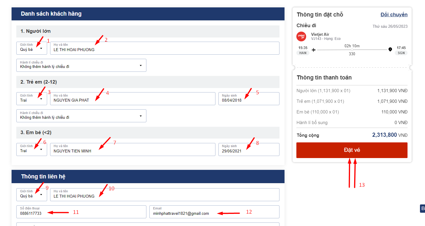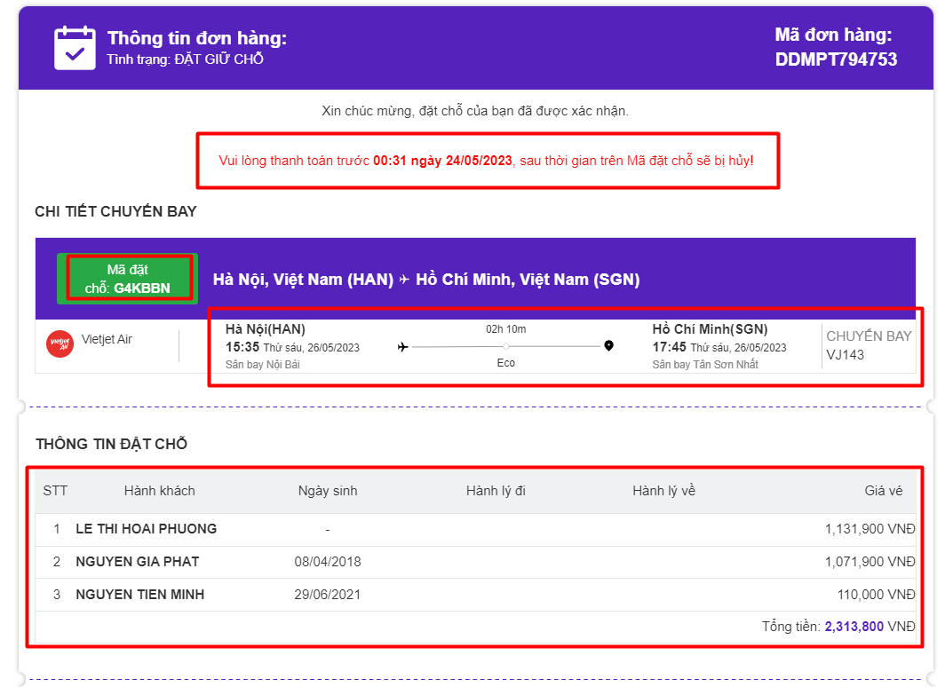 Bước 3: Bạn gửi đơn hàng cho khách kiếm tra lại thông tin và chốt vé.